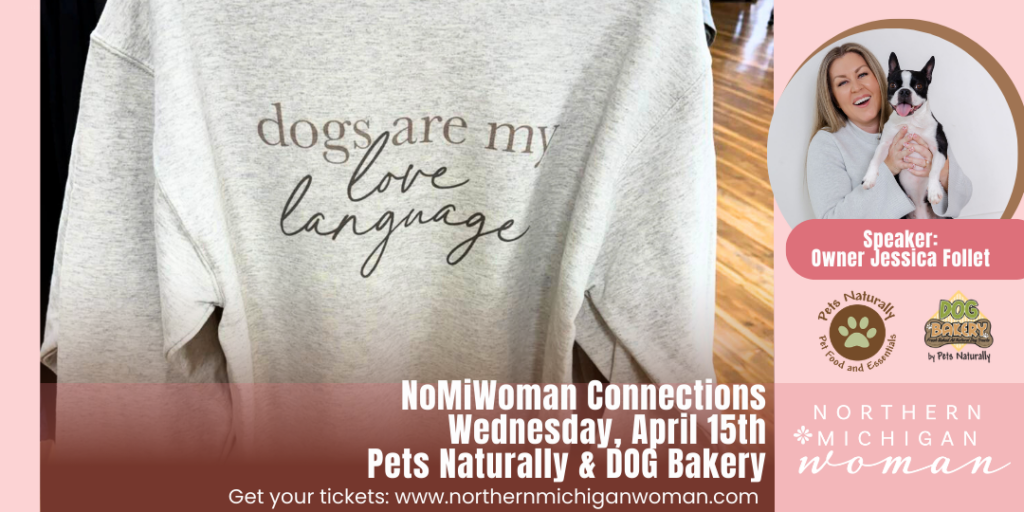Our featured speaker, Jessica Follet, owner of Pets Naturally and The DOG Bakery, will share her journey from Traverse City to a career in ad-tech in New York City, and ultimately back home to continue her family’s legacy in pet wellness after purchasing the businesses from her mom, Kathy Hyland, in 2025.❤️
